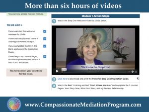 When I started Linda Kroll’s Compassionate Mediation Program I was familiar with the words used in the description and I thought I had “been there, done that,” but I was interested in how she would present the program, so I joined.